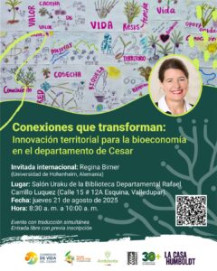 A space to discuss innovation, the sustainable use of biodiversity, and partnerships that drive the sustainable transformation of Cesar, with the participation of Professor Regina Birner, bioeconomy expert from the University of Hohenheim (Germany).